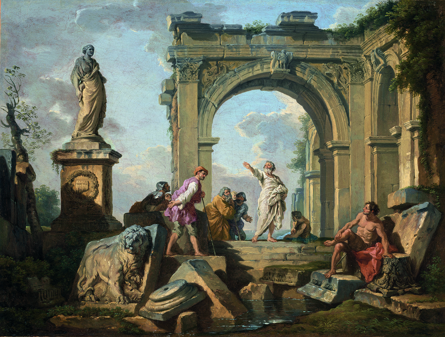 Architectural Capriccio with a Sibyl in Front of the Pyramid of Cestius; Capriccio with an Apostle Preaching in Roman Ruins